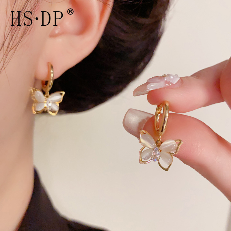 夏の新しい甘くて多用途なダイヤモンドがちりばめられた蝶のイヤリング、ニッチな気質、ファッショナブルでシンプルな超妖精デザインのイヤリング