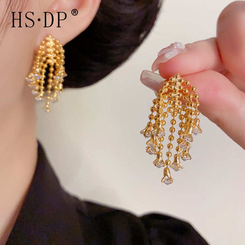 フランスのレトロな花火ダイヤモンドタッセルイヤリング女性用、軽い高級感、ハイエンドのパーソナライズされたイヤリング、ファッショナブルで多用途なイヤリング卸売