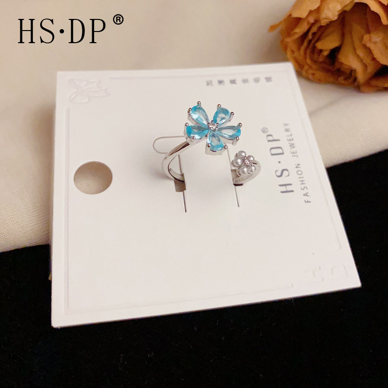 小さくて新鮮でファッショナブルな青い花のオープンリング、フェミニン、シンプル、甘くて多用途、人差し指リングジュエリーのソースメーカー