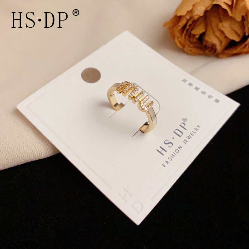 夏の新しいデザインのマイクロ象嵌ジルコンレターシェルオープンリングパーソナライズされたライト高級多用途人差し指リング卸売