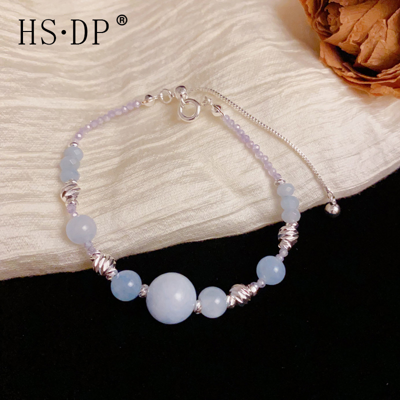 小さな新鮮な気質ファッショナブルなアクアマリンビーズ調節可能なブレスレット女性の個性ライト高級優しい多用途ハンドジュエリー卸売