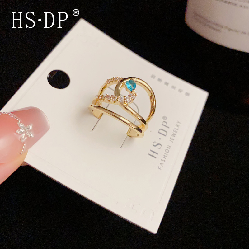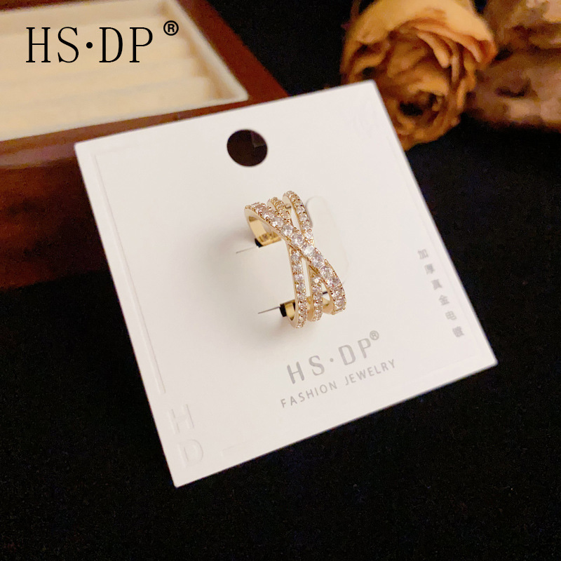 夏の新しいスタイルの絶妙でファッショナブルなフルダイヤモンド多層クロス人差し指リングニッチライト高級シンプルなデザインの女性用オープンリング