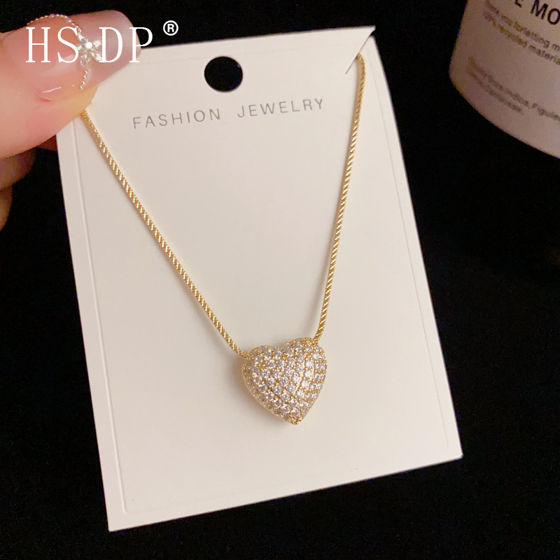 ライトラグジュアリー、多用途、超光沢のあるフルダイヤモンドラブネックレス、フェミニン、ファッショナブル、レトロなデザインのネックレスジュエリー、メーカーから直接