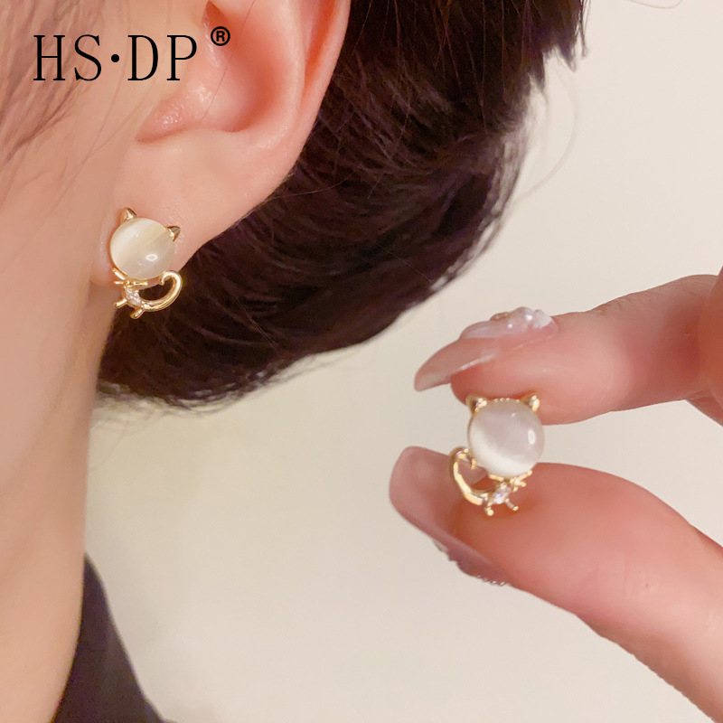 s925 シルバー針ファッションシンプルなデザインキャッツアイ子猫イヤリングニッチライト高級多用途かわいいイヤリング卸売