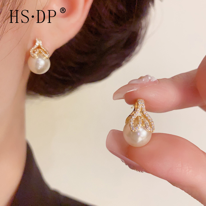 夏の新しいスタイルの絶妙でファッショナブルで多用途な小さなダイヤモンドがちりばめられた葉のパールイヤリング、女性用の優しくエレガントなデザインのイヤリング