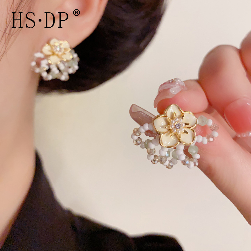s925 シルバー針、新鮮、ファッショナブル、甘くて多用途、花ビーズイヤリング、ニッチな気質、シンプルなデザインのイヤリング
