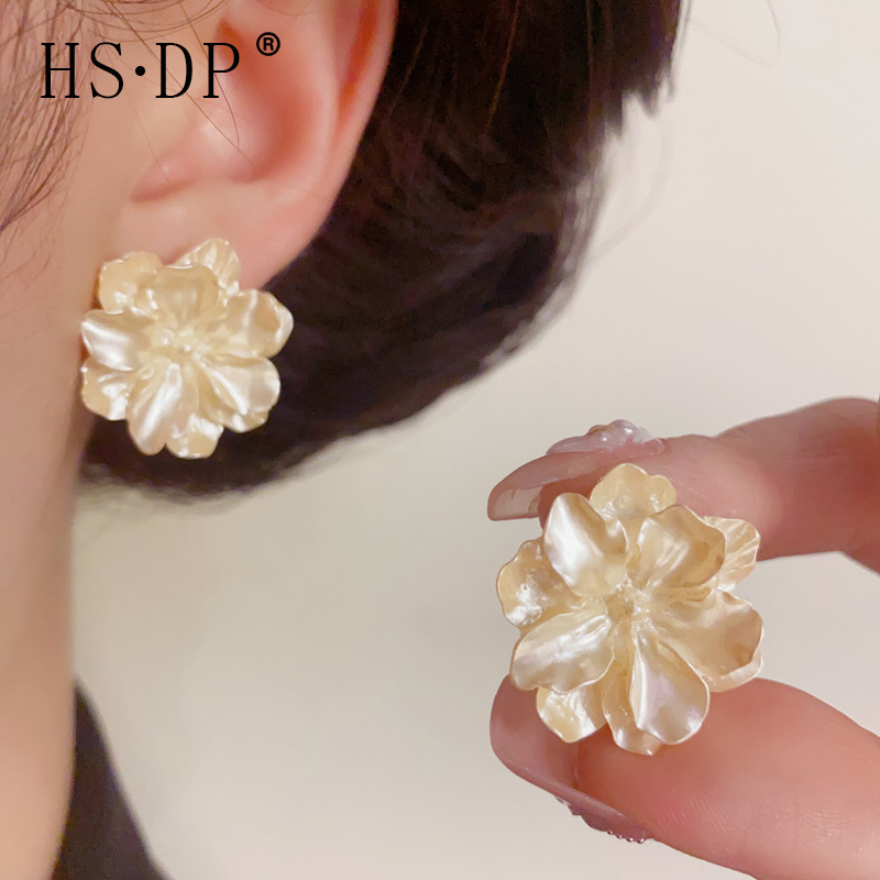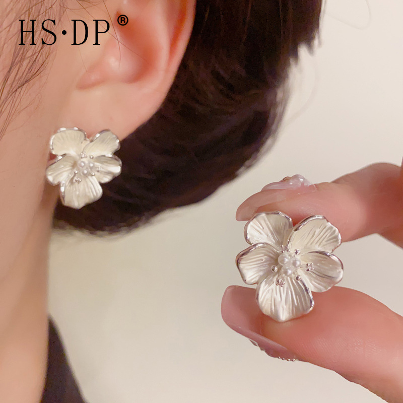 s925 シルバー針ファッション誇張薄塗りメタルフラワーイヤリング女性の個性ライト高級多用途デザインイヤリング