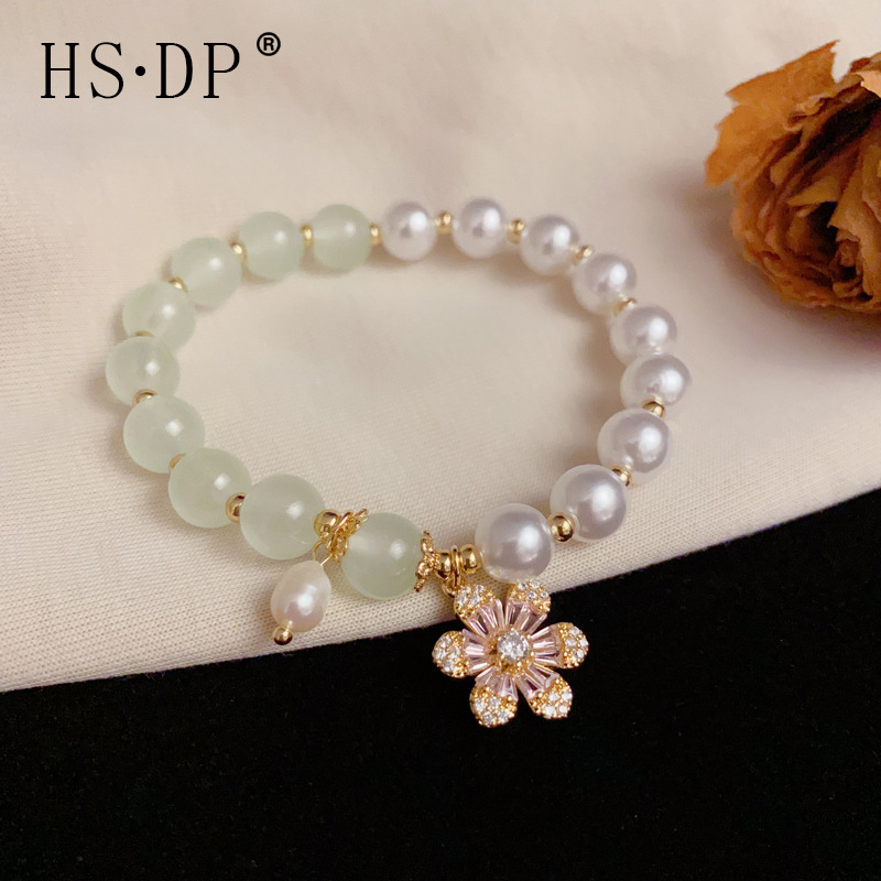 小さな新鮮な気質ファッショナブルなサファイアビーズ淡水真珠の花びらブレスレットライト高級優しい多用途デザインハンドジュエリー卸売