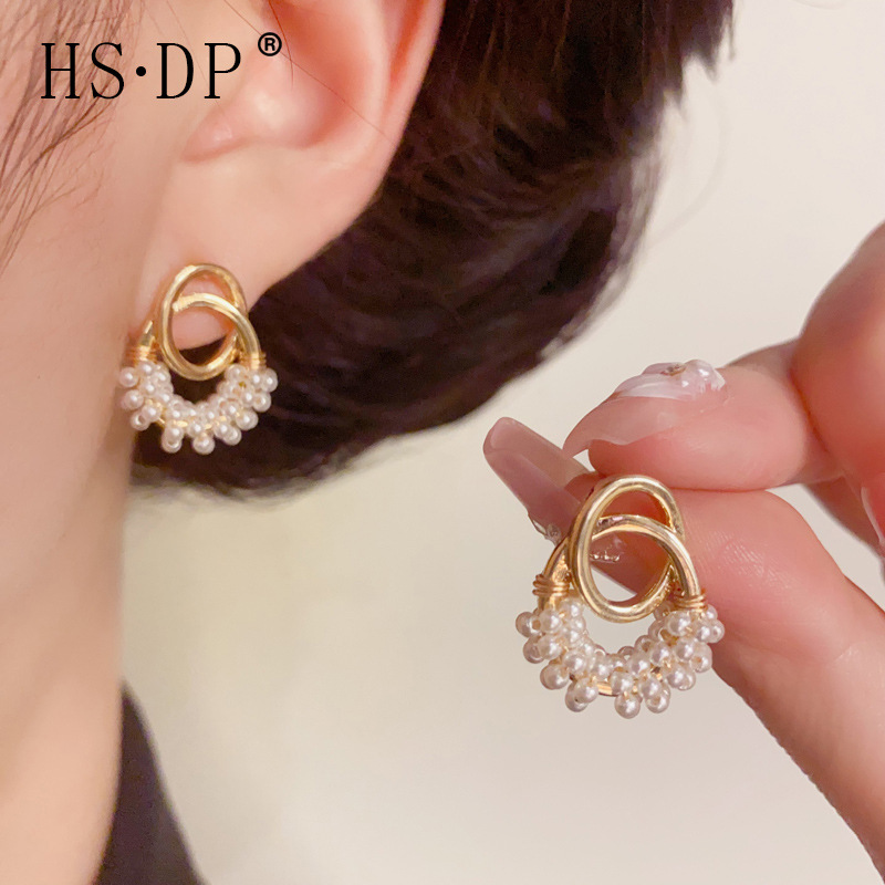 フレンチレトロファッション、優しくて多用途なデザイン、パール幾何学イヤリング、軽い高級感、高品質イヤリング卸売