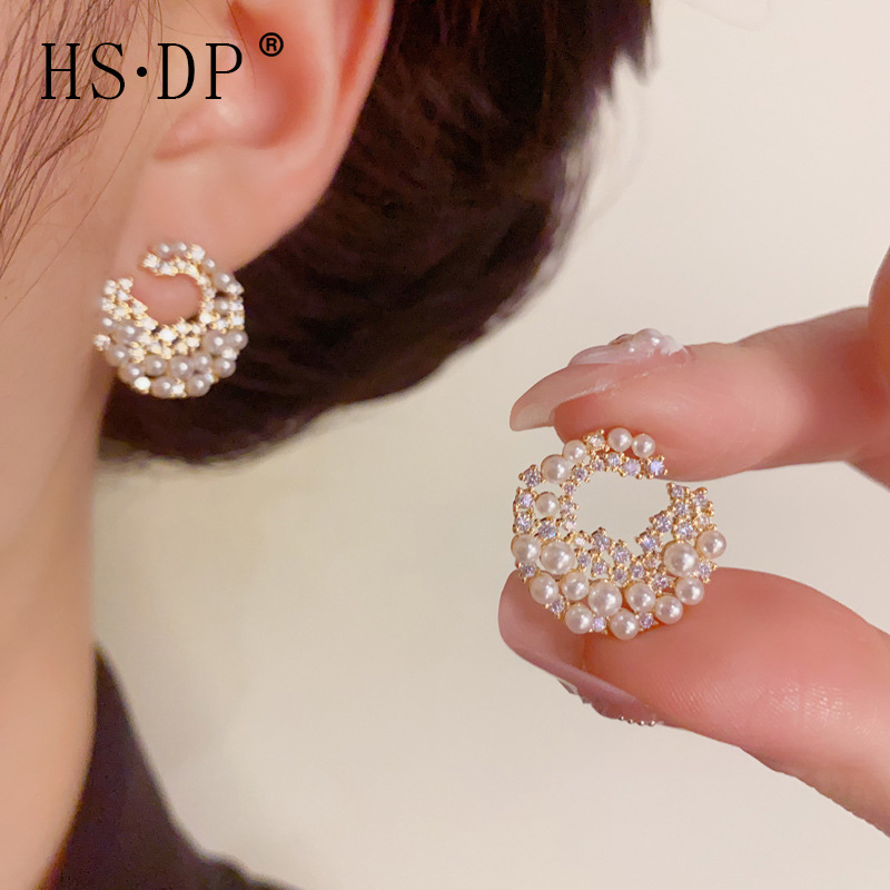 s925 シルバー針気質ファッショナブルで優しく多用途なダイヤモンドパール C 字型イヤリングニッチシンプルなデザインのイヤリング女性用
