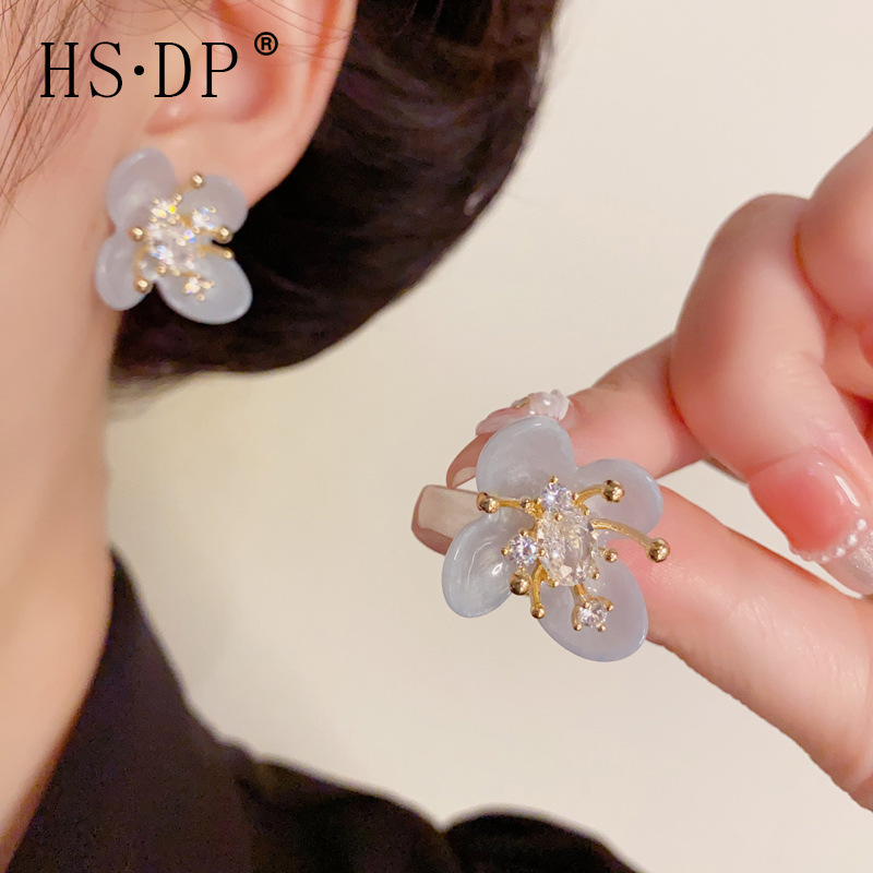 夏の新しいファッション小さな新鮮なブルーのダイヤモンドがちりばめられた花びらのイヤリングニッチデザイン s925 シルバー針イヤリング卸売