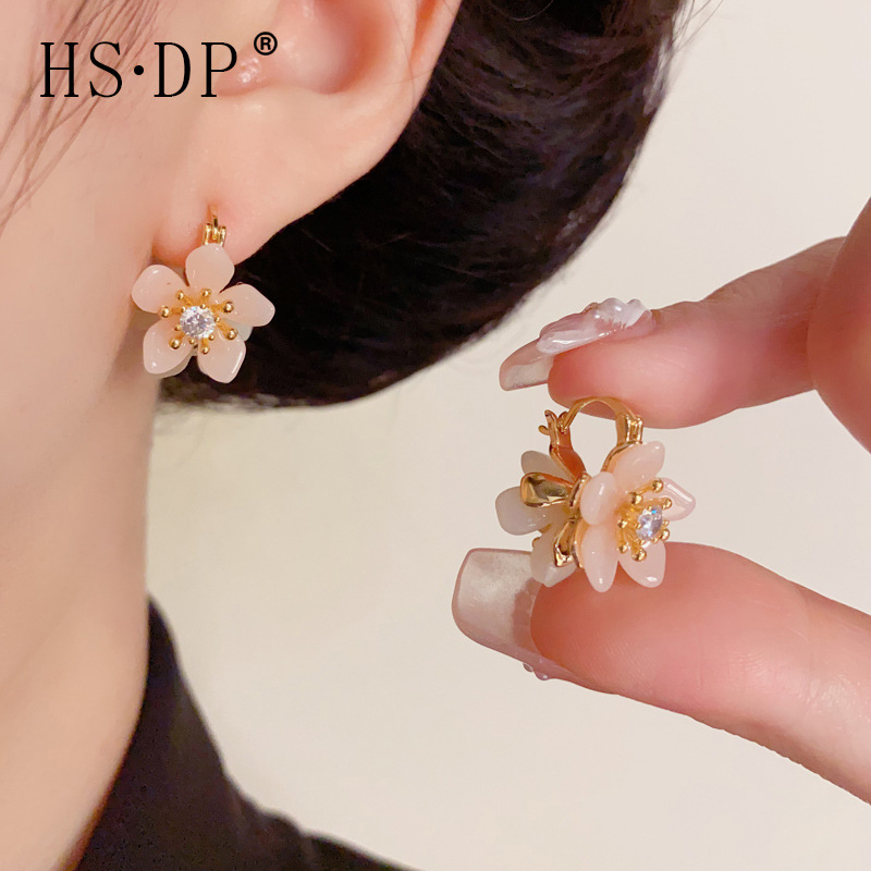 小さな新鮮な気質、ファッショナブルなダイヤモンドがちりばめられた両面フラワーイヤリング、パーソナライズされた軽い贅沢、甘くて多用途、高品質のイヤリング卸売
