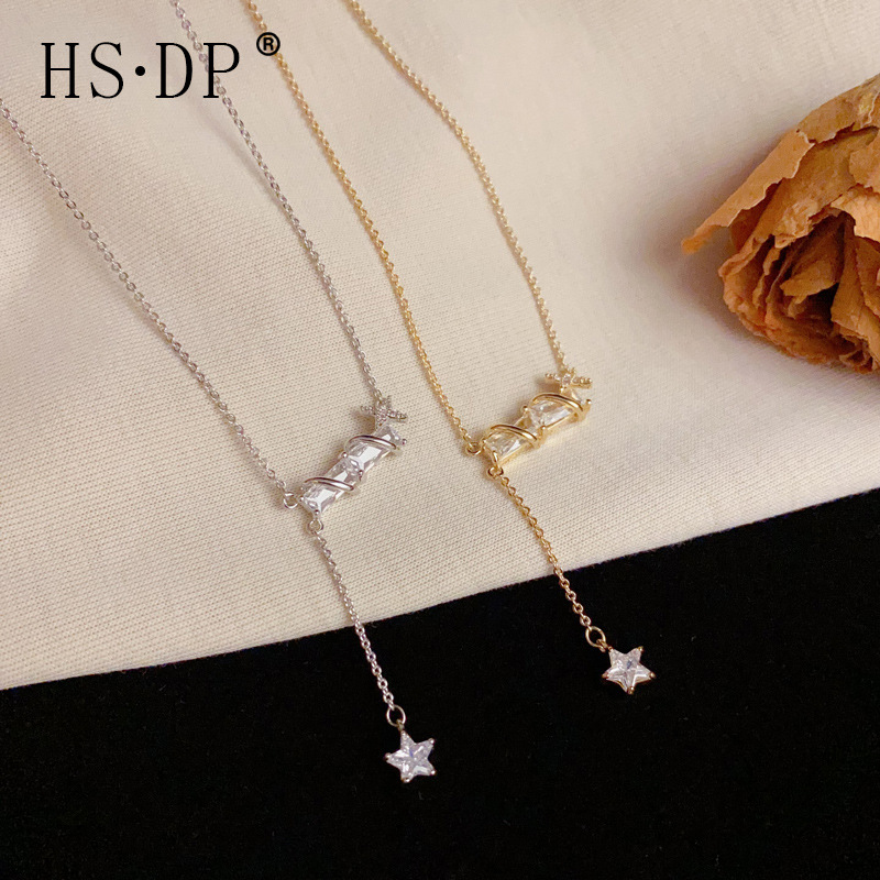 夏の新しいファッション多用途超フラッシュデザインダイヤモンドがちりばめられた円筒形スタータッセルネックレスパーソナライズされたライト高級鎖骨チェーン