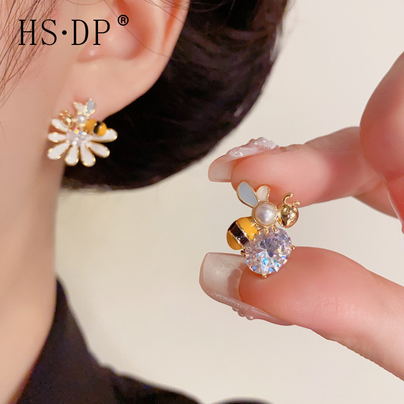s925 シルバー針気質ファッションデザイン非対称デイジービーイヤリングライト高級甘い多用途イヤリング卸売