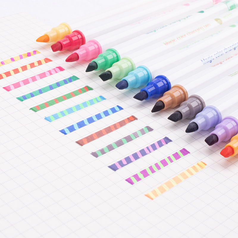 ディザトーン爆型蛍光ペン12色双頭魔法変色ペン軟頭学生落書きペンカラー重点マーカーペン