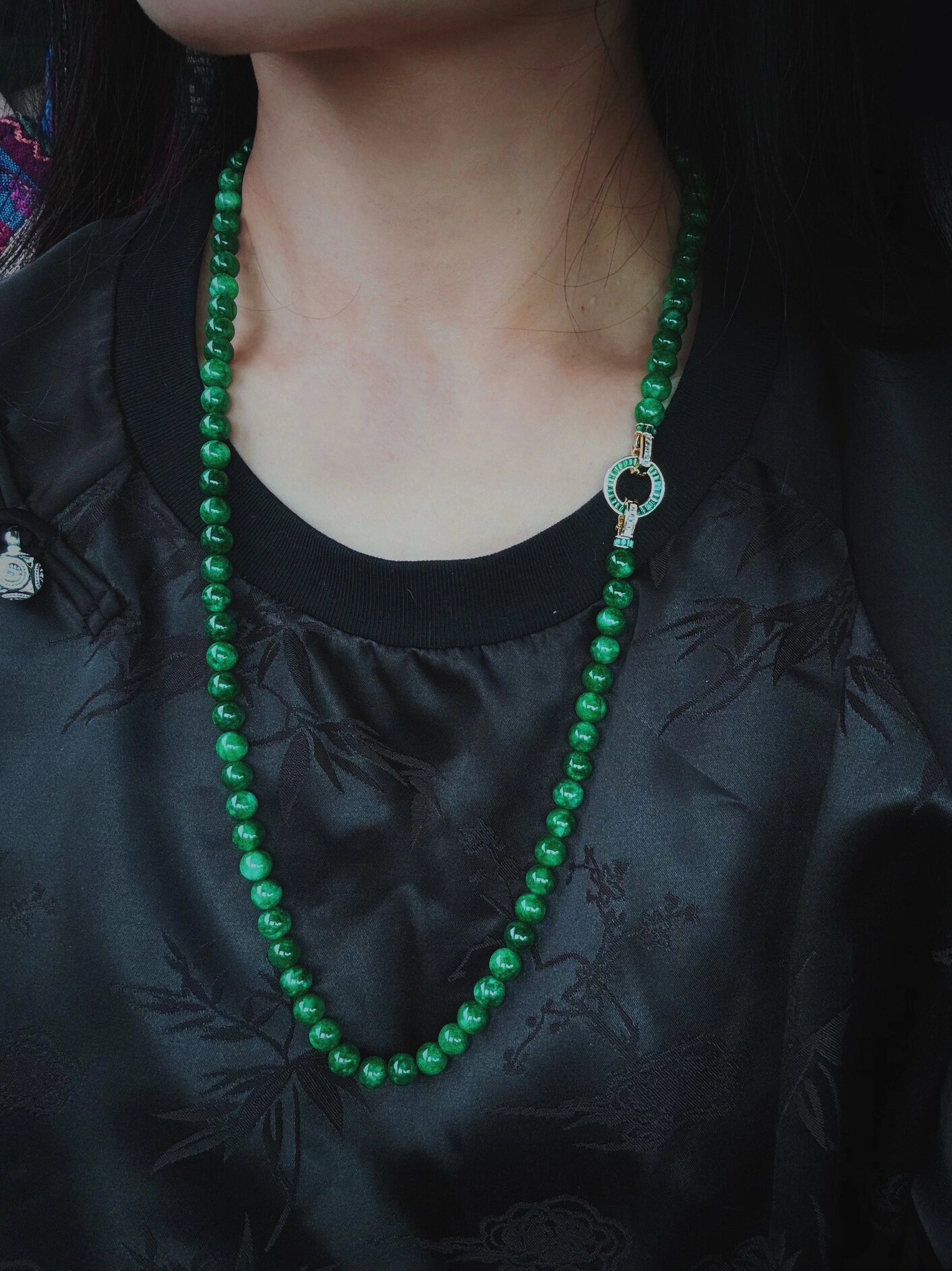 天然翡翠乾青ネックレス鎖骨鎖帝王緑毛衣鎖多輪手串国風新中国式女性鎖