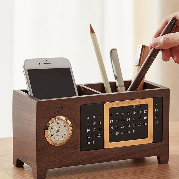 温旭収納ケース桃木筆筒卓上カレンダー時計胡桃収納軽豪華タイプオフィス木筆学生木製収納