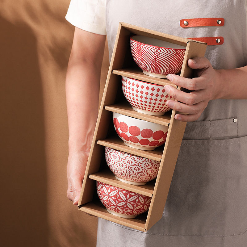 陶磁器のご飯の碗の創意的な個性の食事の碗の日本式の碗のセットの闘笠の碗の贈り物の箱の中で引っ越して贈り物をするお土産