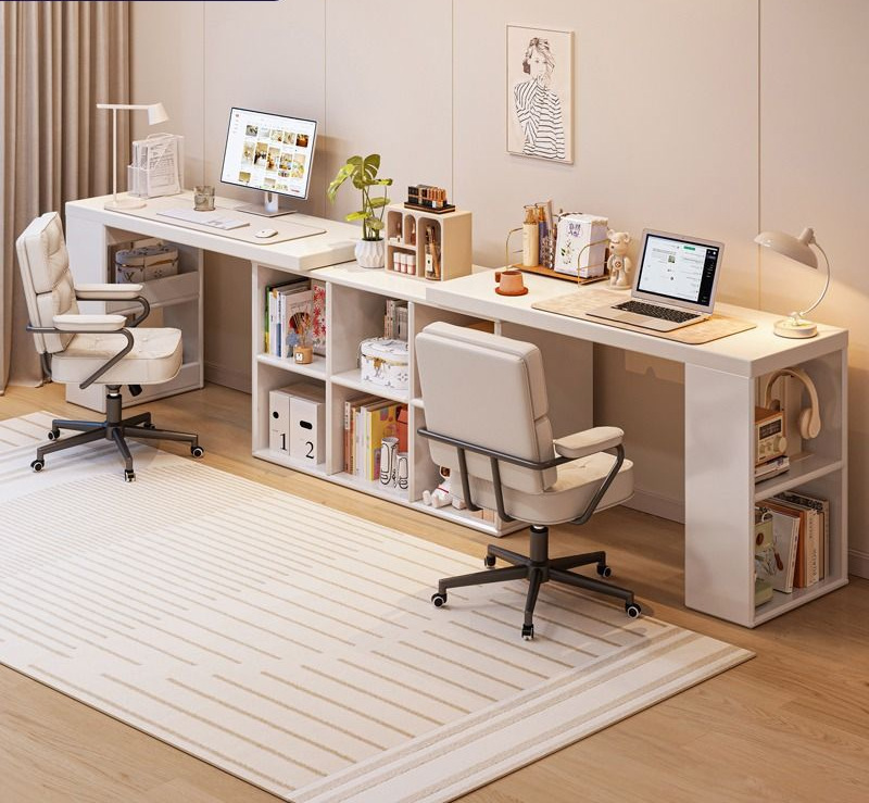 ダブルデスク家庭用学生コンピュータデスク寝室女の子ドレッシングテーブルコーナーデスク本棚一体型テーブル