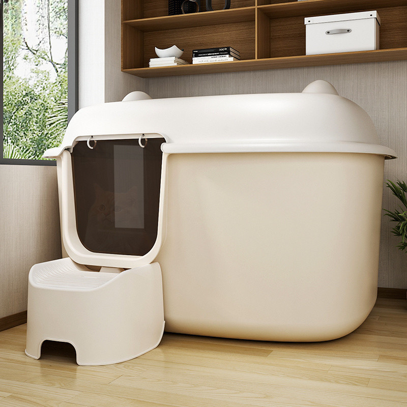 p9j 猫トイレサイズ 完全密閉型 防臭・飛沫防止 引き出し式猫トイレ 砂付き 子猫用 デフォルト
