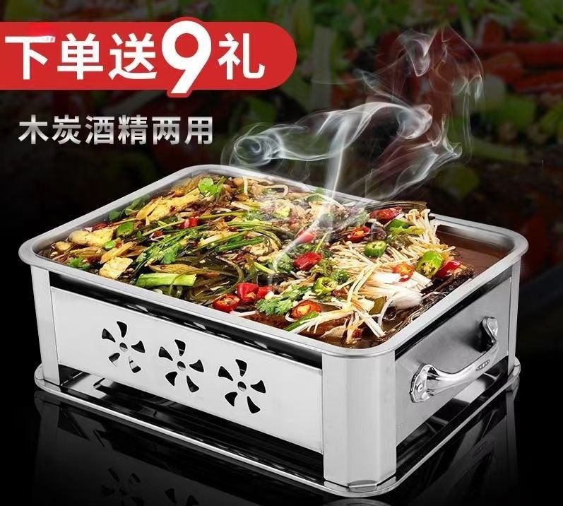 厚いステンレス焼魚アルコール炉商用海鮮木炭長方形家庭用棚カレー皿