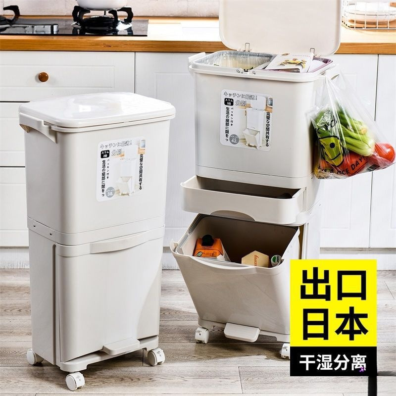キッチンゴミ箱蓋付き多機能乾湿分類ゴミ箱日本式家庭用リビングルームの挟み収納桶
