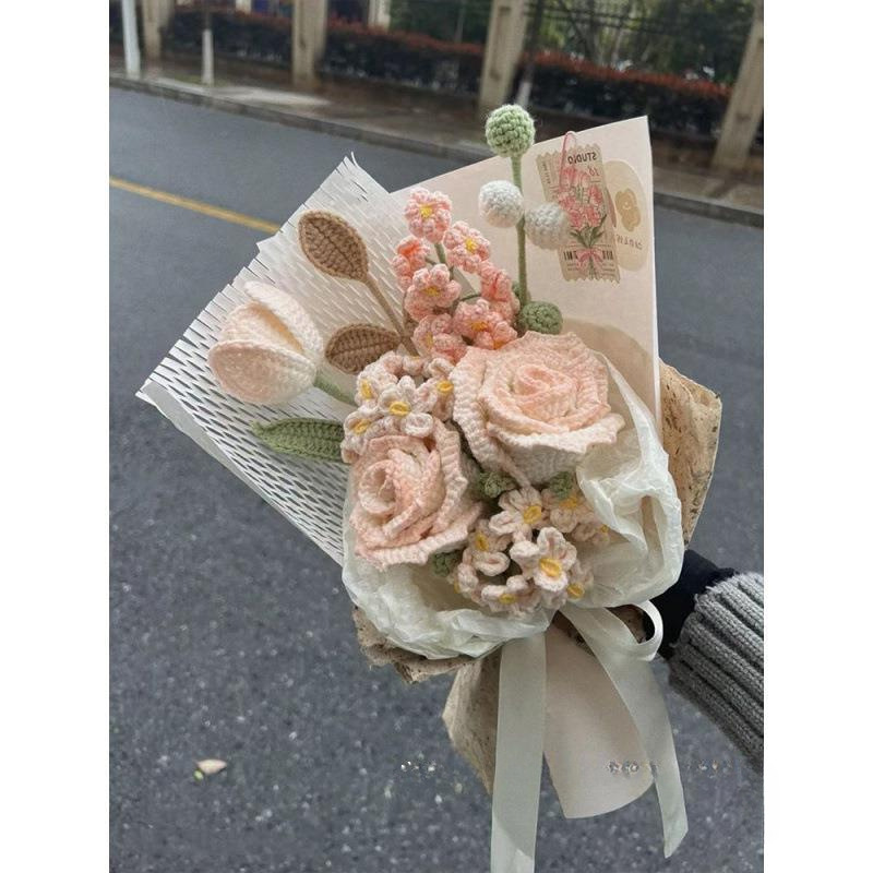 手作りフラワーブーケバレンタインデーギフト母の日織花卸売ウール素材パッケージウールかぎ針編みポリエステル布