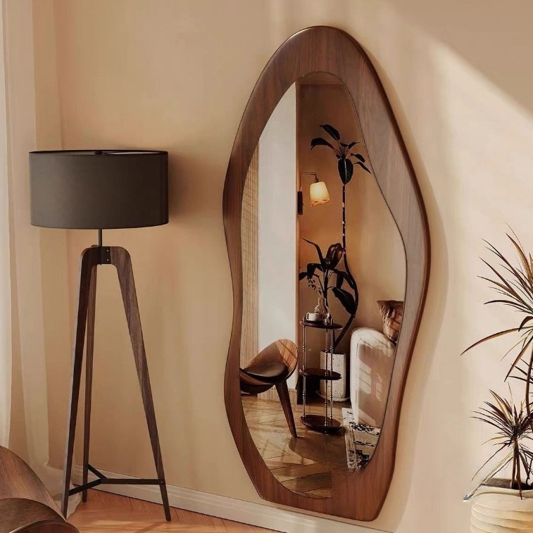 メーカー試着鏡 大型鏡 全身鏡 壁掛け鏡 衣料品店 ブラックウォールナット 特殊形状壁掛け