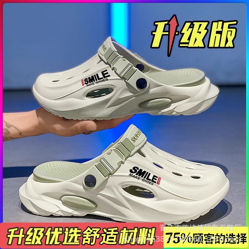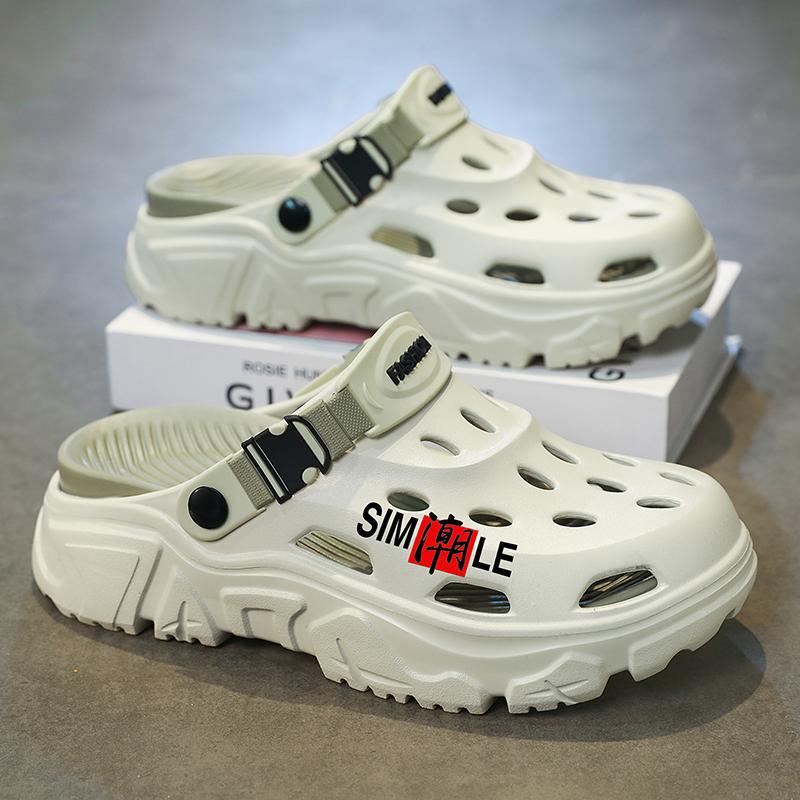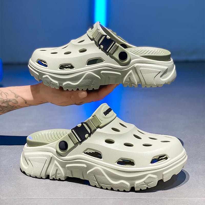 2025 クロックスメンズ夏のトレンディなアウターウェアノンスリップソフトソールインターネットセレブビーチシューズメンズ通気性中空サンダル