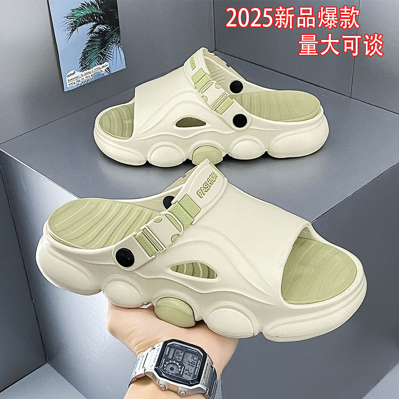 2025 夏サンダルメンズアウターウェアティーンエイジャーポップコーンノンスリップ耐摩耗性トレンディなファッション通気性厚底包頭スリッパ