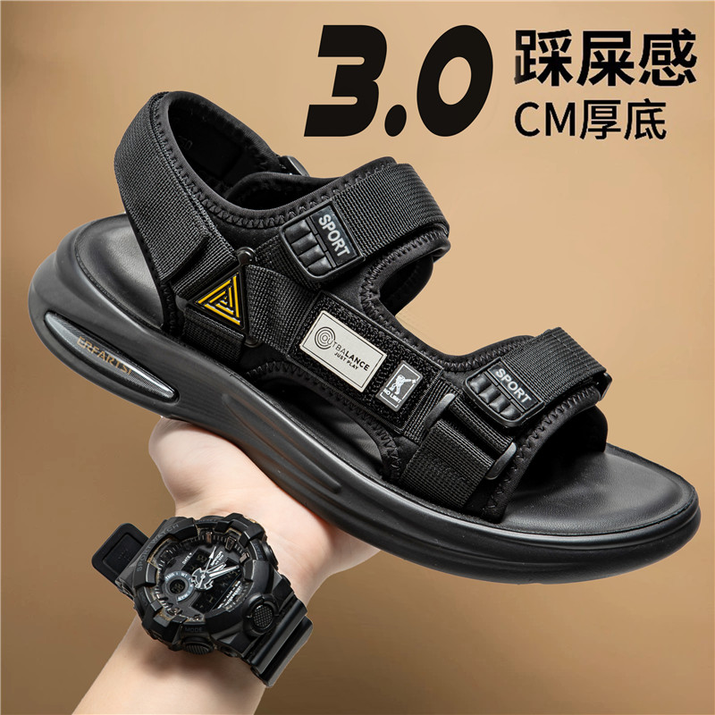 2025 新しいサンダルメンズ夏アウターノンスリップスポーツレジャーティーンエイジャー厚底耐摩耗性サンダル