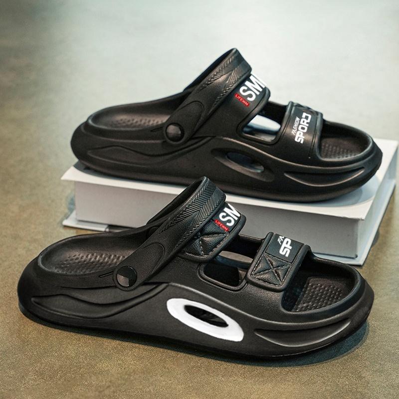 夏の新しいメンズ包頭ハーフスリッパメンズ 2025 アウターウェア厚底滑り止めカジュアルスポーツビーチシューズ