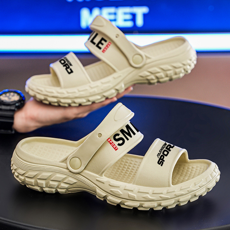 夏の新しいクロスボーダーメンズ下駄、厚底EVA滑り止めアウタービーチスリッパ、ドロップシッピング