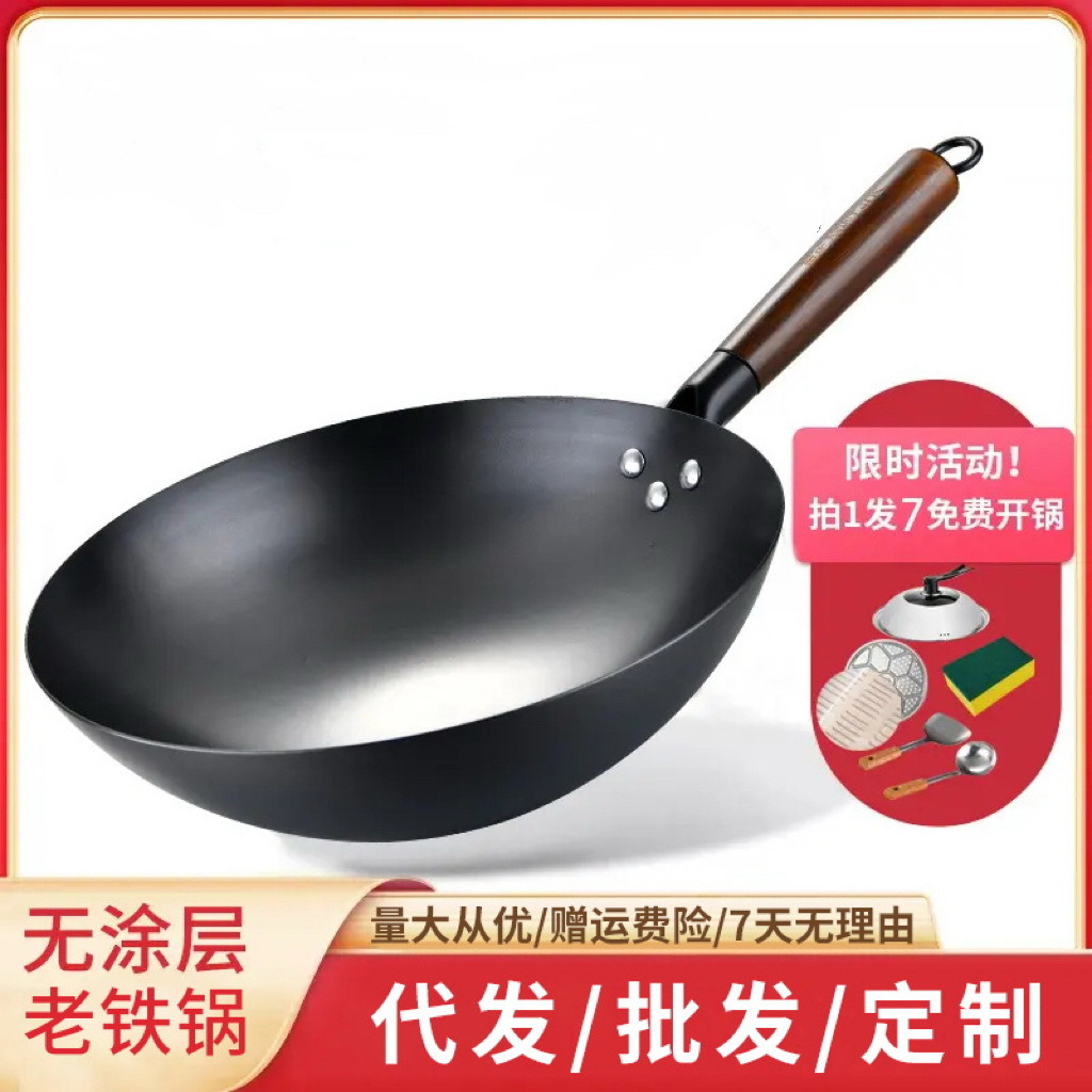 代理金正老鉄鍋家庭用大容量旧式円底炒め鍋章丘鉄鍋無コーティング炒め料理は鍋にくっつかない