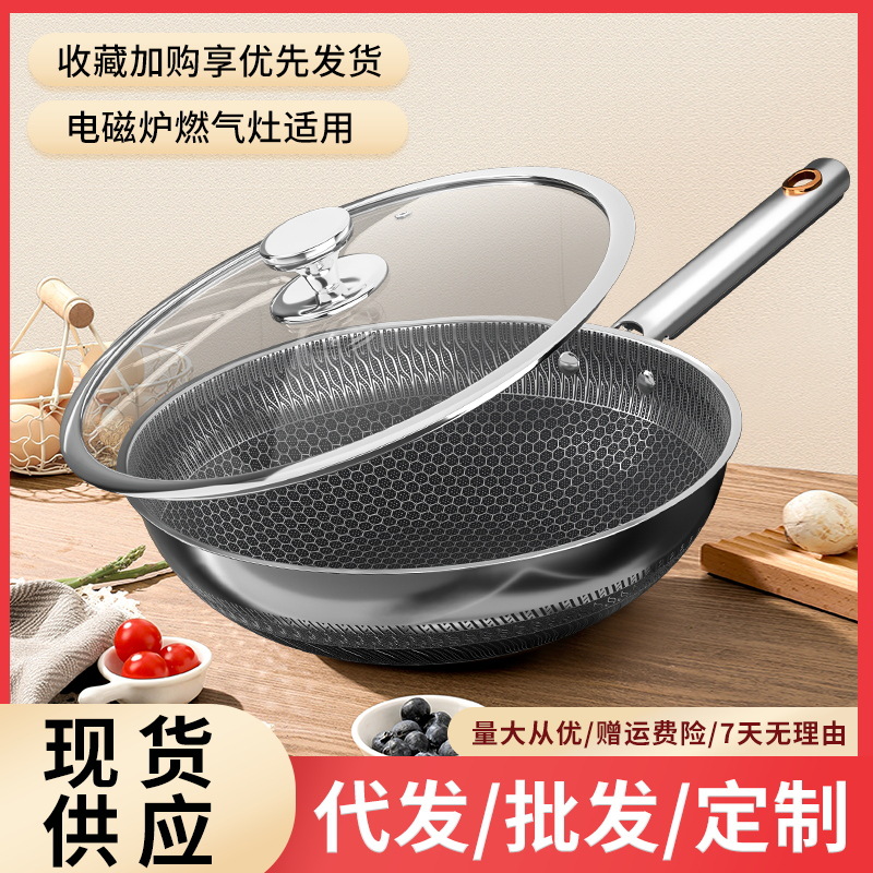 卸売り304ステンレス炒め鍋コーティングなしハニカム炒め鍋は鍋家庭用フライパンフライパンのギフト鍋にくっつかない