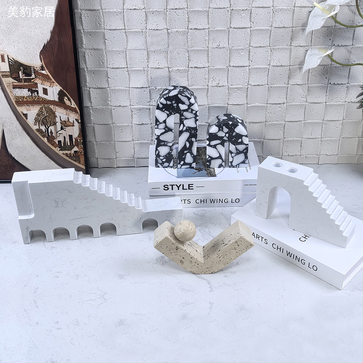 美豹現代幾何学大理石置物見本室販売所デスクトップ本棚家庭創意飾り物工芸品