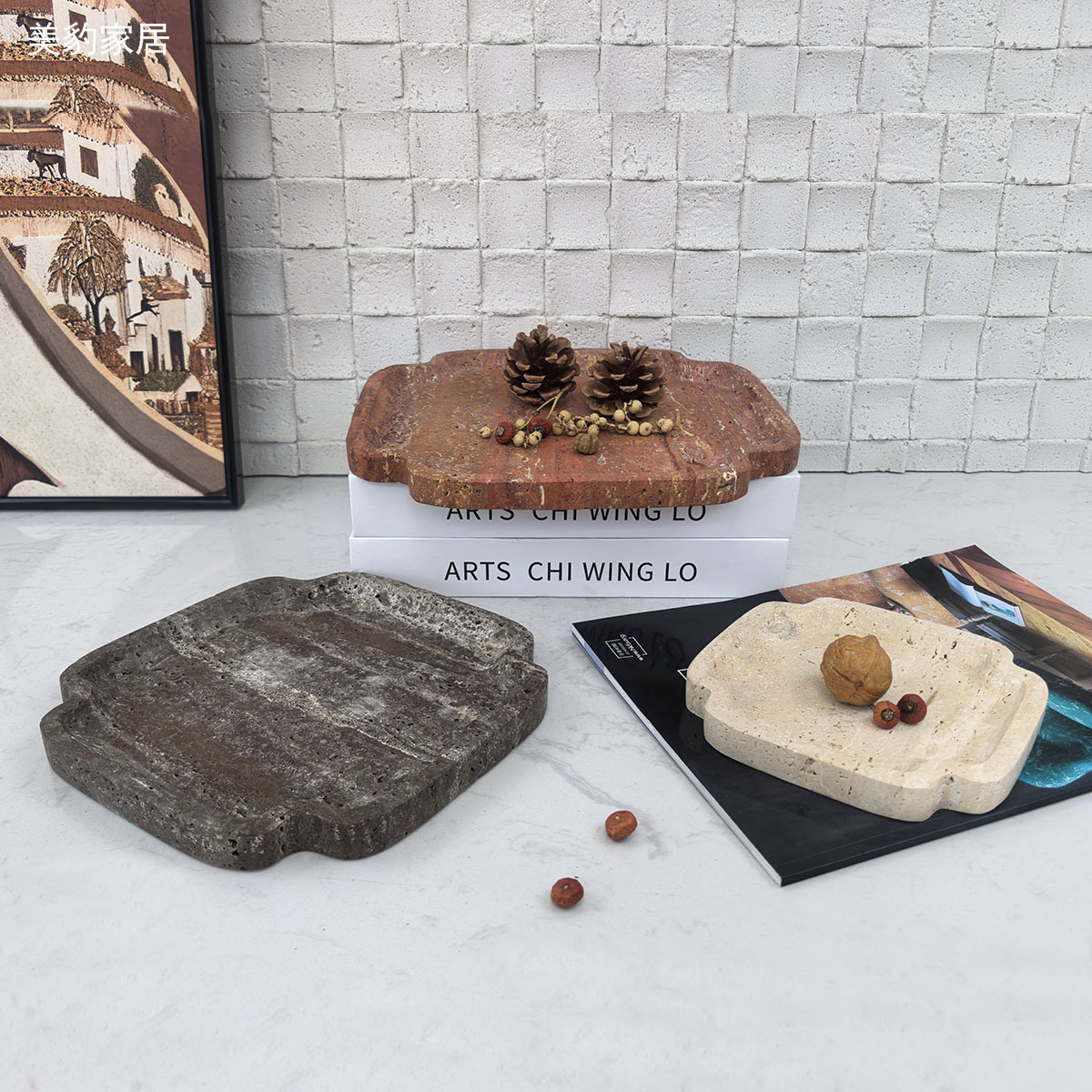 美豹クロスボーダー寂しいレトロ大理石トレー見本室茶卓収納盤装飾品