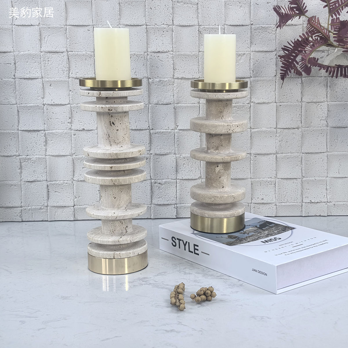 美豹シンプル大理石燭台デザイナーのサンプル室の食卓テレビの柔らかい工芸品の置物