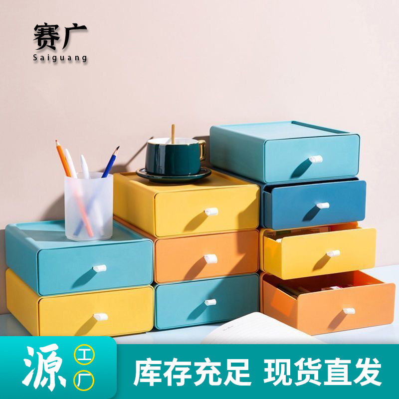 送料無料 寮用積み重ね可能収納ラック 寝室用化粧品 プラスチック製文房具収納ボックス デスクトップ引き出し収納ボックス