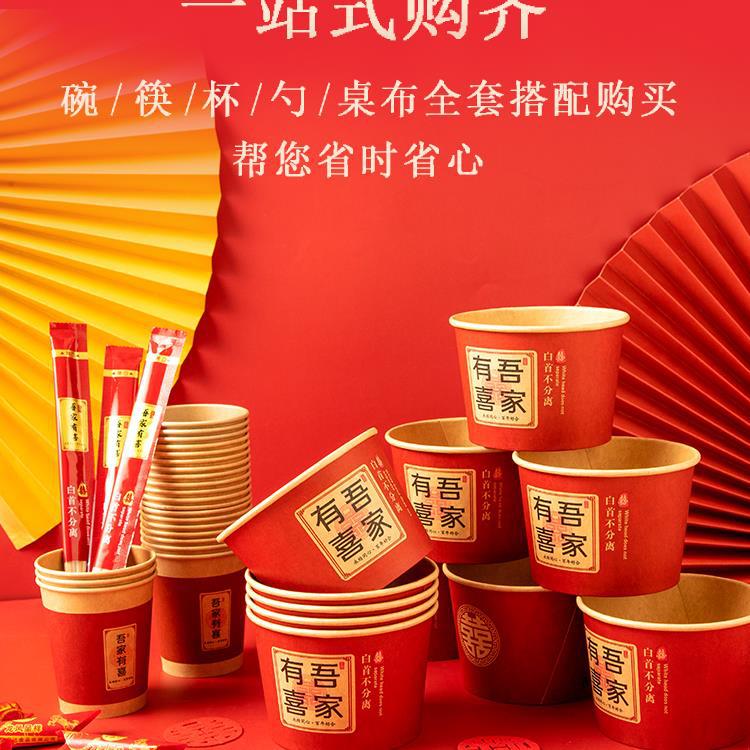 一回限りの結婚祝いの碗の祝い事の赤い紙の碗の家庭用の祝い事の祝い事の祝い事の祝い事の祝い事の酒席の食器の食器の食器のセット