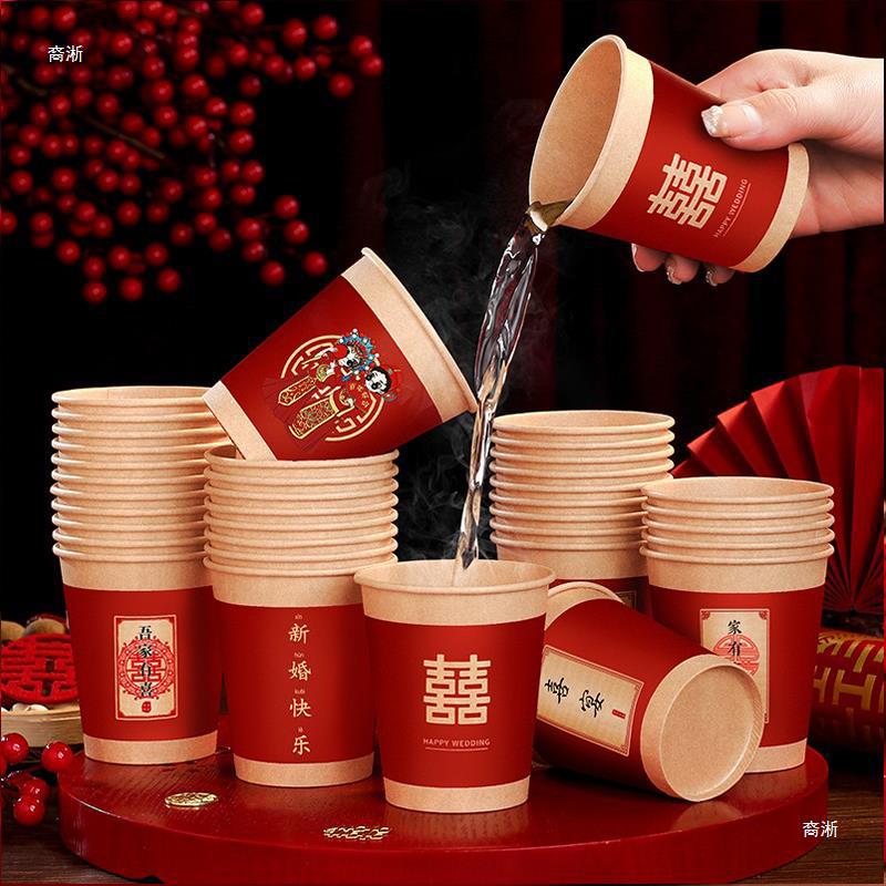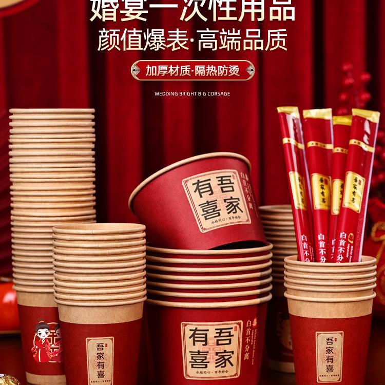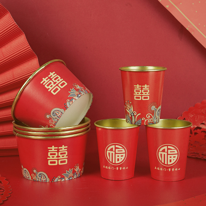結婚紙コップの箱全体に厚い結婚祝いの使い捨てコップの結婚式のお祝いの赤い紙コップの結婚祝い用品の大全