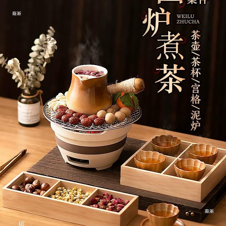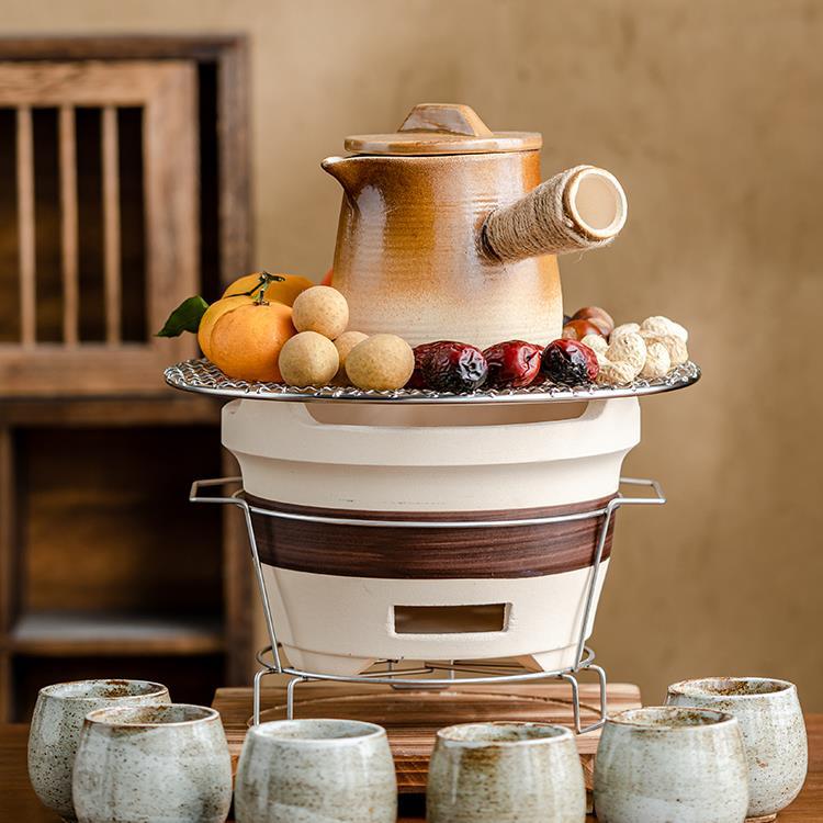 囲炉煮茶缶茶煮茶器具陶壺煮茶壺煮乳茶缶家庭用焼き茶缶ストーブセット