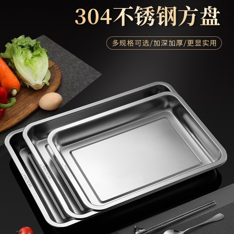 食品級304ステンレストレー焼き魚皿蒸し皿家庭用商用皿長方形鉄皿角皿