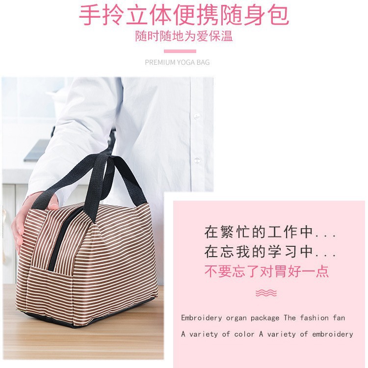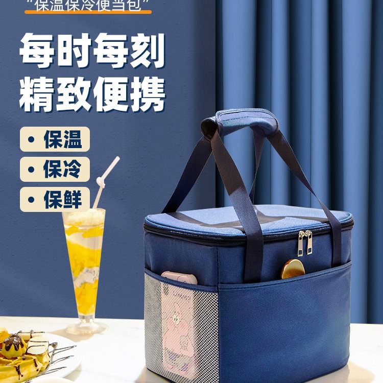 アルミ箔を厚くした大容量シンプルな弁当袋出勤弁当袋手提げ袋にご飯防水弁当箱大サイズ保温バッグを持っている