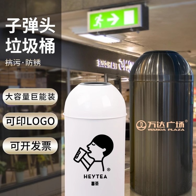 ゴミ箱大容量商用ミルクティー店ホテルデパート創意ロゴネット赤モデルステンレス果皮箱