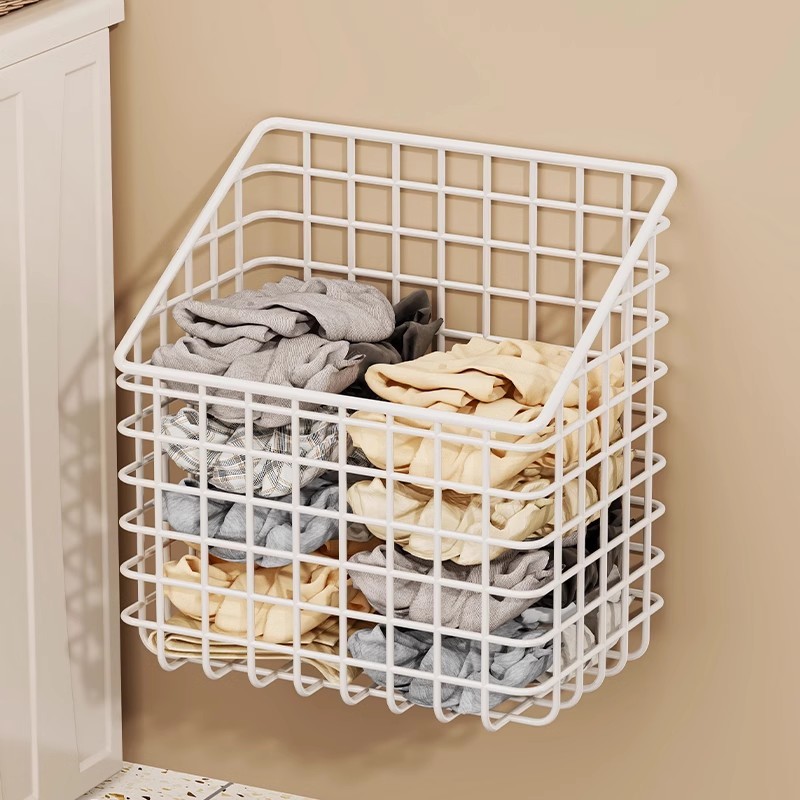 壁に穴を開けずに収納ラック、壁掛け寮用品ハンギングバスケット、バスルーム収納ラック、汚れた衣類バスケット