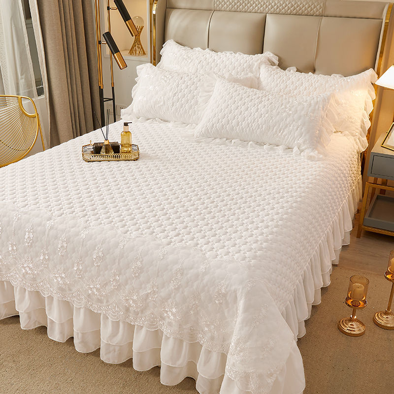 韓国無地キルティングベッドカバーシングルレースタイプA厚手ベッドシーツ3点セットプリンセススタイル四季通気性