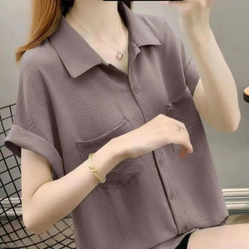 薄いシフォンシャツ女性の夏半袖 2025 夏の新しい女性のシャツ大きいサイズルーズお腹カバートップ女性
