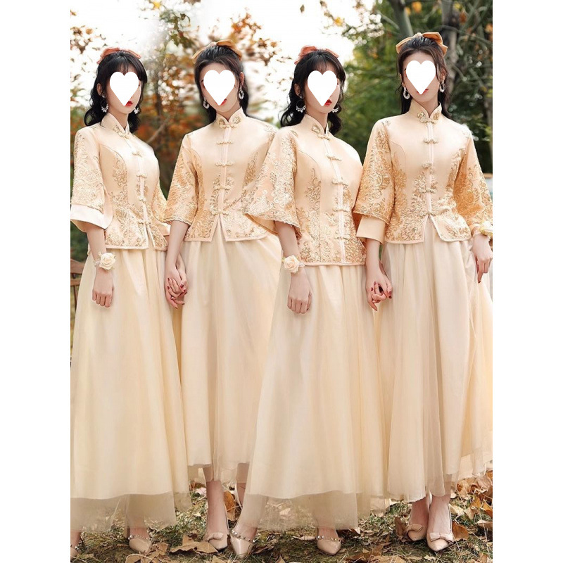 新しい中国風のブライズメイドドレス、ライトラグジュアリーニッチハイエンドシャンパンカラー改良されたツーピーススーツシスタードレス毎日着用可能