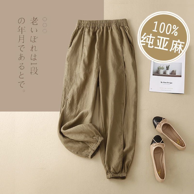 女性用コットンとリネンのブルマ、夏用の薄手でゆったりとした速乾性のカジュアルパンツ、レギンスハーレムパンツ、多用途のリネン9点ファッション